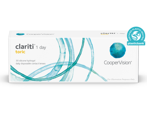 - clariti® 1 day toric er plastnøytral. CooperVision kompenserer for plastavfallet for hver eske med clariti® 1 day toric-kontaktlinser som selges og distribueres.††3