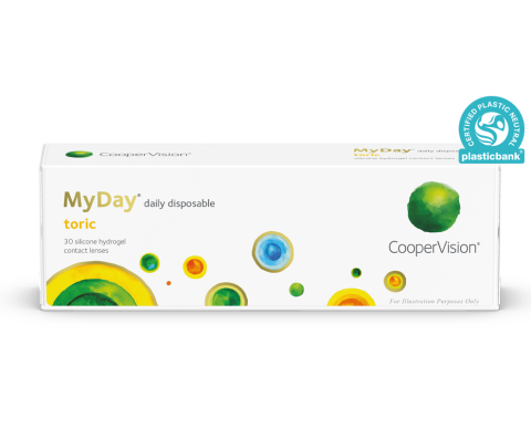 - MyDay® toric er plastnøytral. CooperVision® kompenserer for plastavfallet for hver solgte og distribuerte eske av kontaktlinsen MyDay® toric.#2