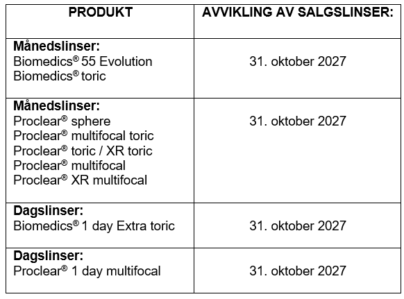 Omstillingen gjennomføres i løpet av de neste to årene, og innebærer at noen av selskapets Biomedics®- og Proclear®-hydrogelprodukter vil utfases: