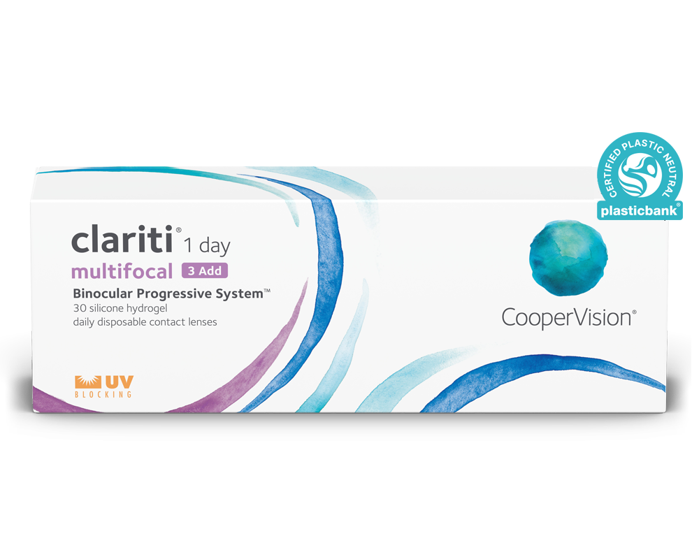 - clariti® 1 day multifocal er et plastnøytralt produkt. CooperVision kompenserer for plastavfallet for hver eske med clariti® 1 day multifocal-linser som selges og distribueres.‡1